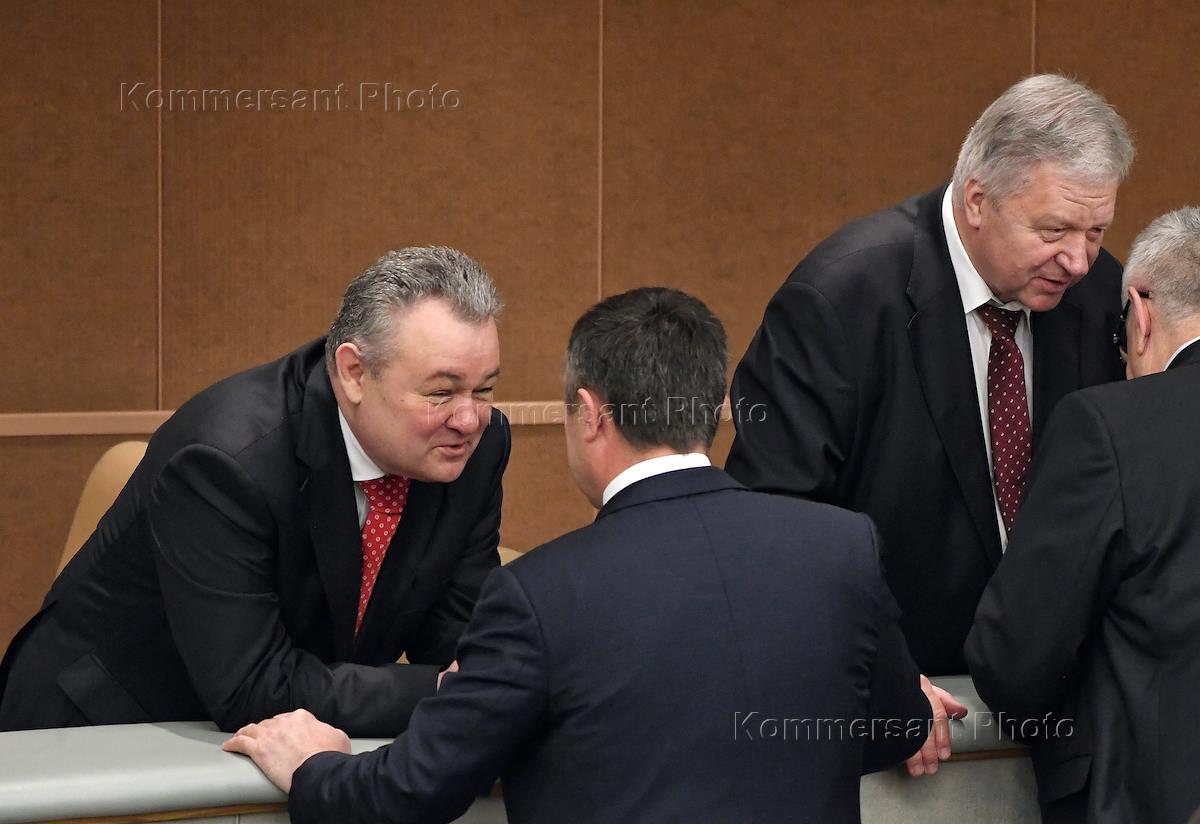 Пленарное заседание Государственной думы (ГД) России. Слева направо: председатель комитета ГД России…