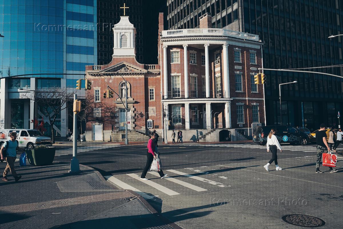 Виды Нью-Йорка. Прохожие на улице и посетители ресторана.