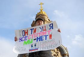 Участник одиночного пикета "Обнулите сроки политзекам" у памятника Героям Плевны.