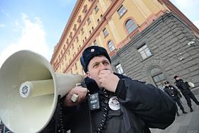 Сотрудник полиции во время серии одиночных пикетов "Обнулите сроки политзекам" на Лубянской площади.