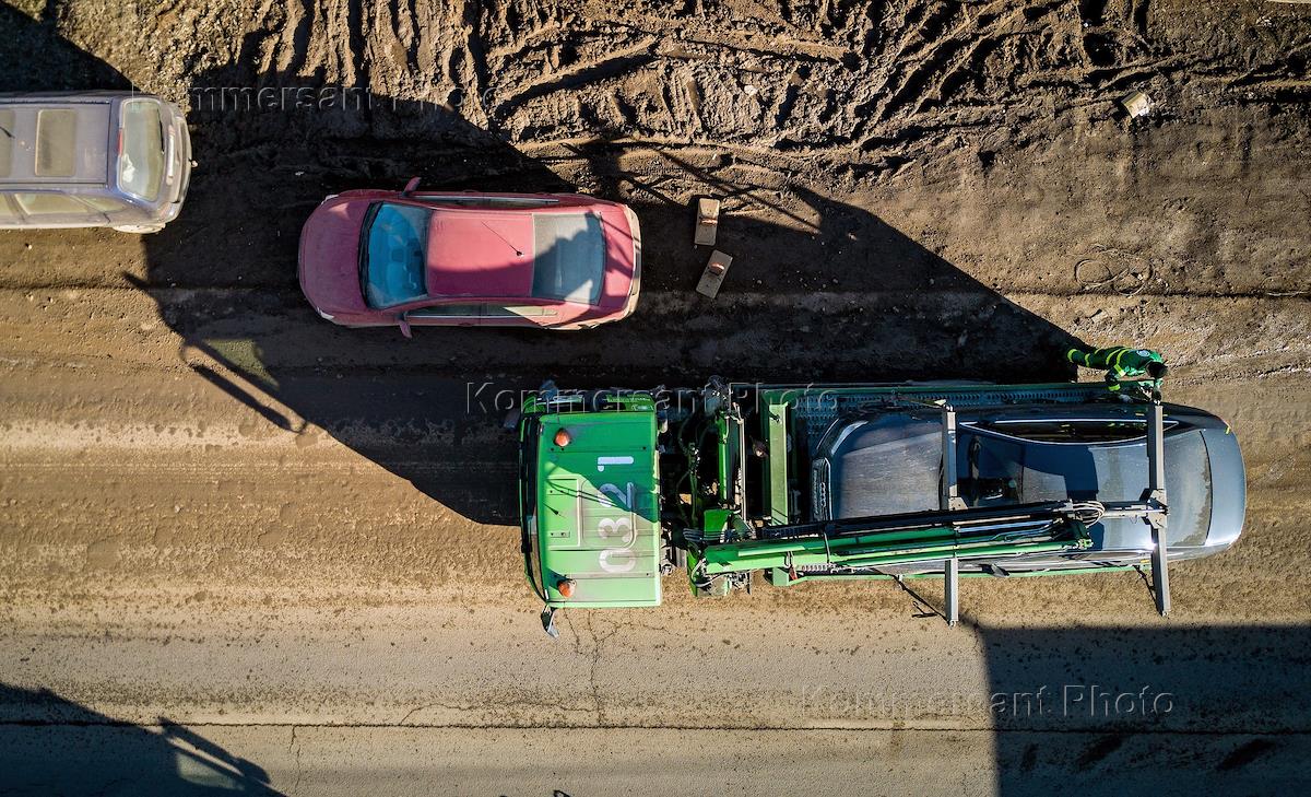 Строительство мобильного комплекса новой инфекционной больницы в Новой Москве. Грузовые автомобили…