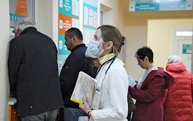 Меры предосторожности против коронавируса COVID-19. Жанровая фотография. Работа поликлиники.