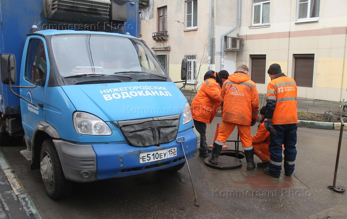 Оползень на склоне Похвалинского съезда. Работники аварийной службы МУП "Нижегородский водоканал" у…