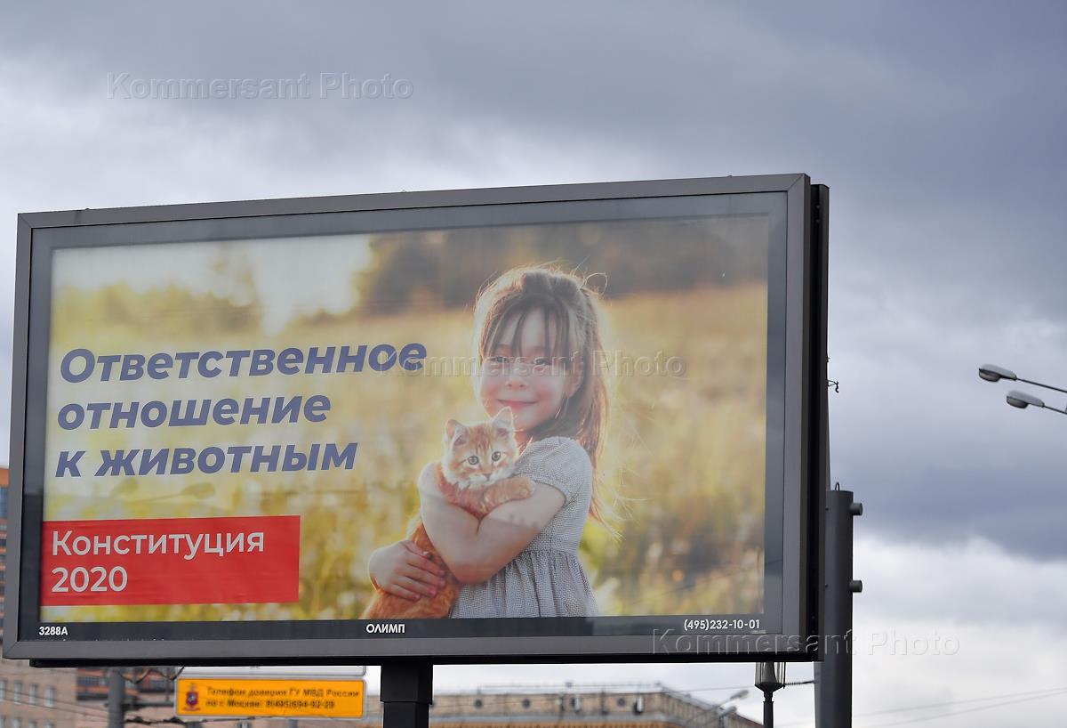 Баннеры в поддержку голосования по изменениям в Конституцию России на Ленинградском шоссе.