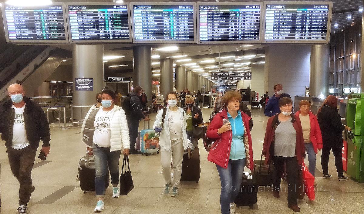 Общество Международный аэропорт Внуково имени А.Н.Туполева во время режима карантина из-за опасности распространения коронавирусной инфекции COVID-19. Жанровая фотография.