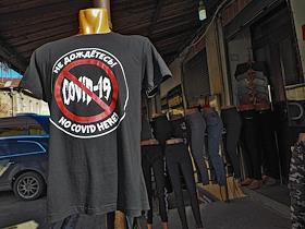 Жанровая фотография. Работа торгового комплекса "Апраксин двор". Футболка с изображением значка…