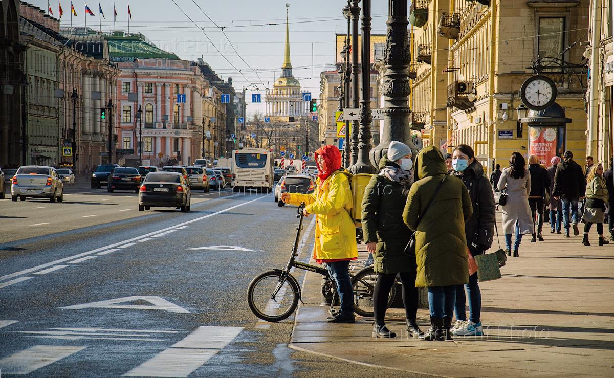 Меры предосторожности против коронавируса COVID-19. Жанровая фотография. Прохожие в медицинских масках