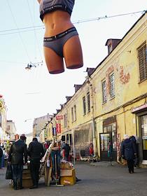 Жанровая фотография. Манекен в нижнем белье висит на рынке "Апраксин двор".