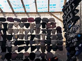 Жанровая фотография. Торговая палатка с головными уборами на рынке "Апраксин двор".