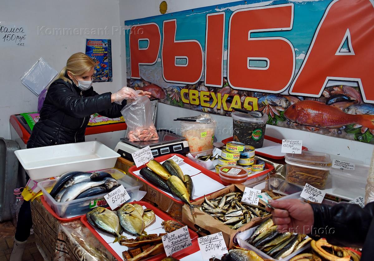 Меры предосторожности против коронавируса COVID-19. Жанровая фотография. Продавец в медицинских…