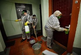 Дезинфекция подъезда в Москве, в связи с коронавирусом