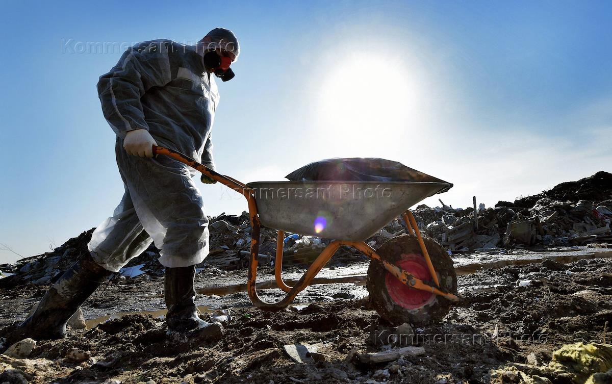 Сотрудники компании ГУП "Экострой" во время работ по утилизации опасных отходов и мусора на…