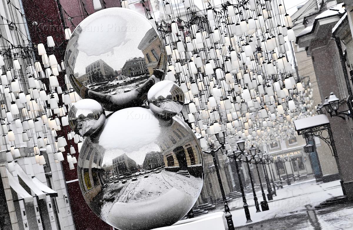 Виды Москвы во время карантина коронавируса COVID-19. Снегопад в городе. Жанровая фотография.…