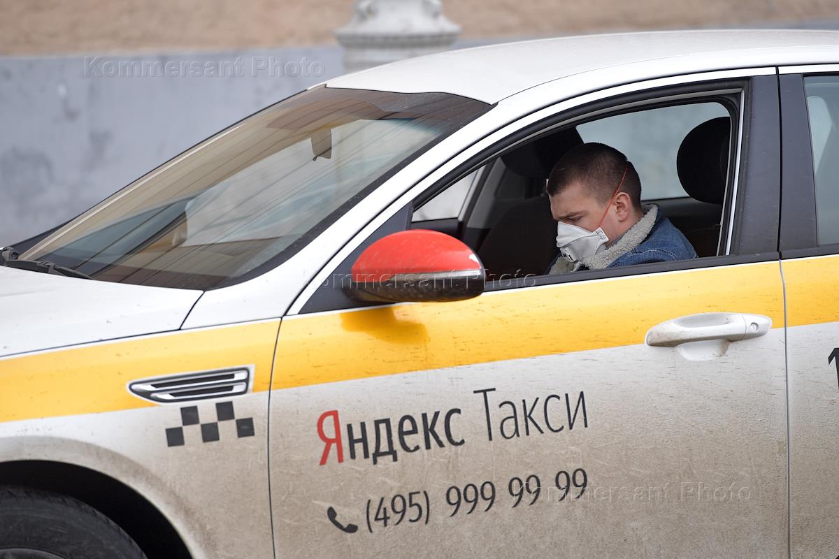 Виды Москвы во время карантина коронавируса COVID-19. Жанровая фотография. Автомобили такси на…