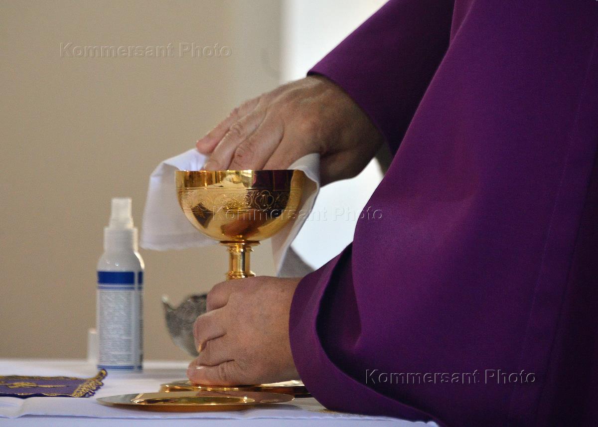 Религия Храм Святого Людовика Французского. Римско-католический приход свв. апп. Петра и Павла в Москве. Отец Игорь проводит богослужение в одиночестве, без прихожан. Все публичные богослужения на период пандемии приостановлены.
