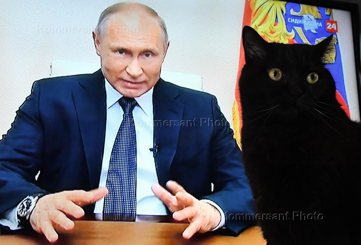 Политика Жанровая фотография. Трансляция выступления президента России Владимира Путина, посвященное мерам по предотвращению распространения короновируса.