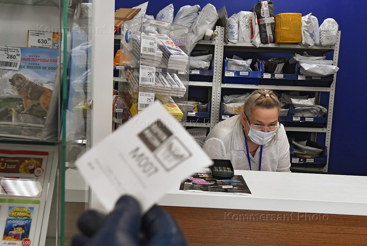 Экономика и бизнес Москва во время режима самоизоляции из-за урозы распространения коронавирусной инфекции COVID-19. Работа сотрудников отделения АО "Почта России".