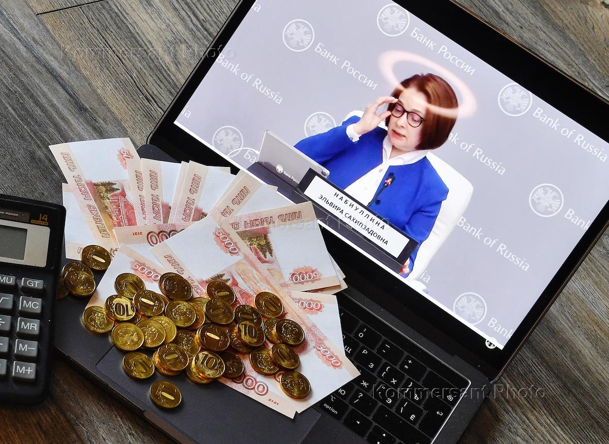 Экономика и бизнес Трансляция онлайн-пресс-конференции Центрального Банка России "Текущая ситуация и стабилизационные меры" во время режима карантина из-за опасности распространения коронавирусной инфекции COVID-19. Жанровая фотография.