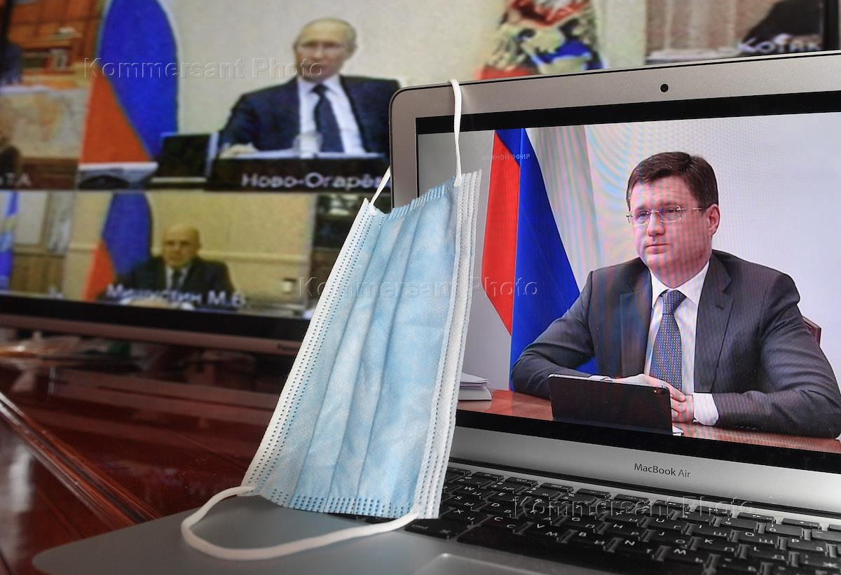 Трансляция выступления президента России Владимира Путина во время совещания в режиме видеоконференции.