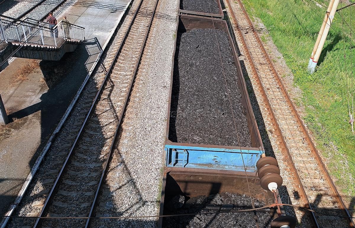 Железнодорожная станция Тугулым (Свердловская железная дорога, СвЖД). Вагоны с щебнем.