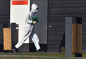 Медицина Москва во время режима самоизоляции из-за опасности распространения коронавирусной инфекции COVID-19. Жанровая фотография. Городская клиническая больница №31 и Медицинский центр "Новомосковский" в поселке Коммунарка Новой Москвы.