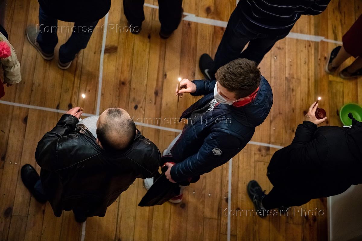 Празднование православной Пасхи в Волгоградской области во время эпидемии коронавирусной инфекции COVID-19. Пасхальная служба в храме.