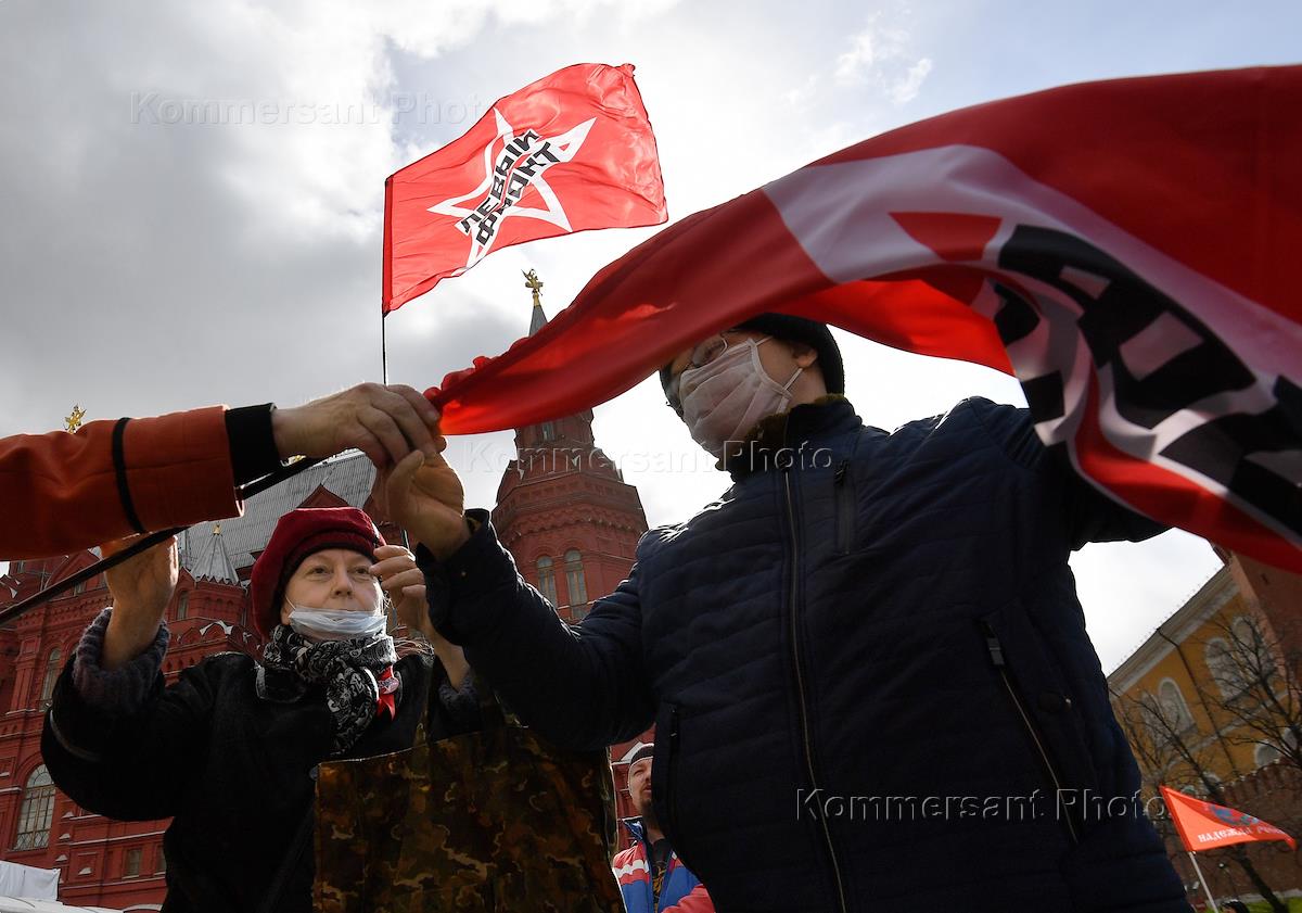 Общество Москва во время режима самоизоляции из-за опасности распространения коронавирусной инфекции COVID-19. Акция Коммунистической партии Российской Федерации (КПРФ), посвященная 150-летию со дня рождения вождя революции Владимира Ленина, на Красной площади.