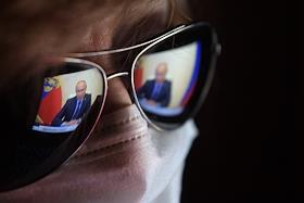 Politics Broadcast of Russian President Vladimir Putin's meeting via video conferencing on the measures to support the Russian economy's bank lending sphere.
