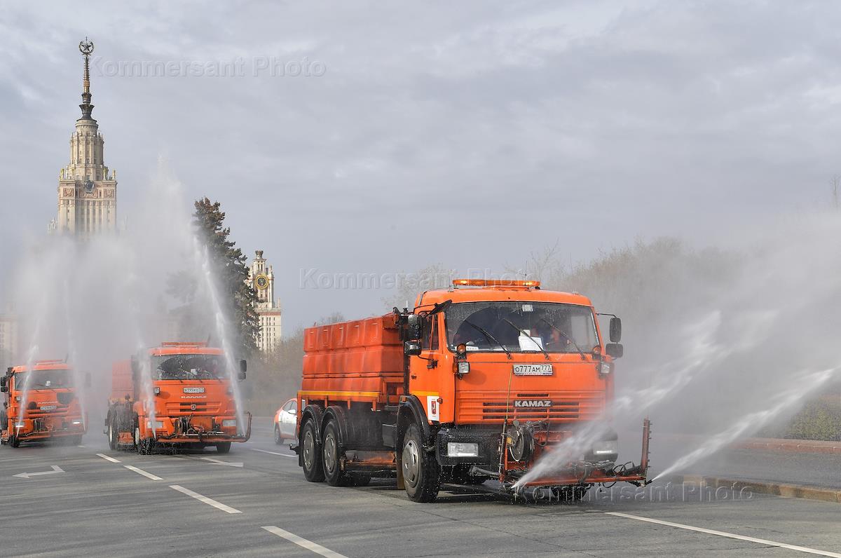 Меры противодействия распространению коронавирусной инфекции COVID-19. Дезинфекции проезжей части…