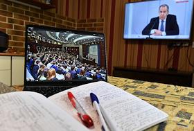 Видеоконференция лекции министра иностранных дел России Сергея Лаврова в МГИМО.