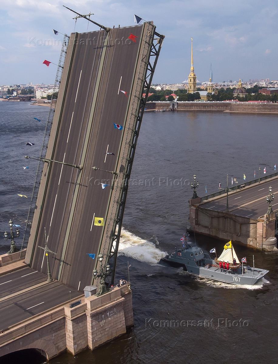 Репетиция морского парада, посвященного Дню Военно-морского флота России на Неве.
