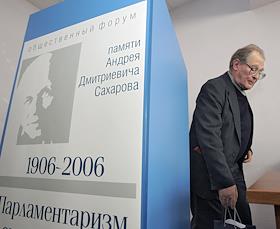 Председатель международного общества "Мемориал", правозащитник Сергей Ковалев во время заседания…