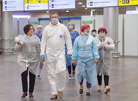 Общество Международный аэропорт Шереметьево имени А.С.Пушкина во время режима карантина из-за опасности распространения коронавирусной инфекции COVID-19. Жанровая фотография. Прилет рейса авиакомпании "Аэрофлот" из Токио в аэропорт Шереметьево.