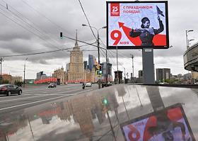 Москва во время режима самоизоляции из-за опасности распространения коронавирусной инфекции COVID-19. Украшения к 9 мая.