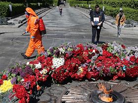 Возложение цветов к мемориалу в киевском Парке Вечной Славы, посвященное Дню победы над нацизмом во Второй мировой войне.