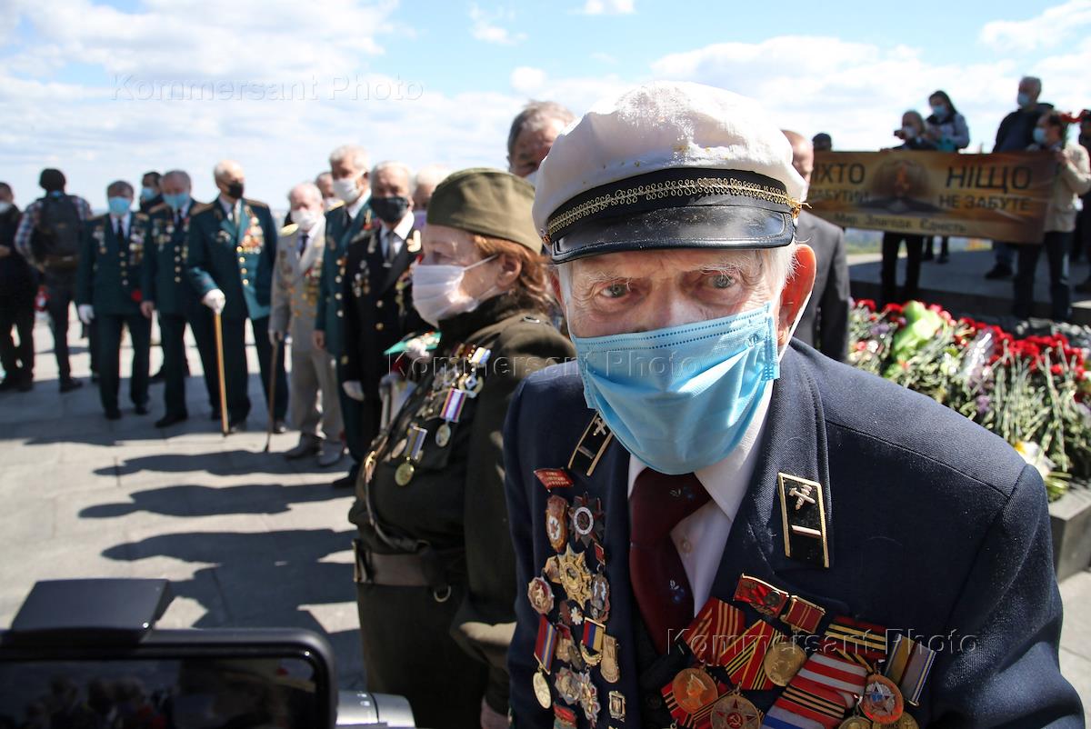 Возложение цветов к мемориалу в киевском Парке Вечной Славы, посвященное Дню победы над нацизмом во Второй мировой войне.