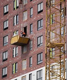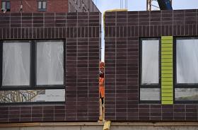 Экономика и бизнес Москва во время режима самоизоляции из-за опасности распространения коронавирусной инфекции COVID-19. Жанровая фотография. Стройка жилых комплексов.