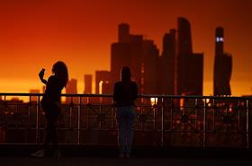 Жанровая фотография. Московский международный деловой центр (ММДЦ) "Москва-сити" на фоне заката…