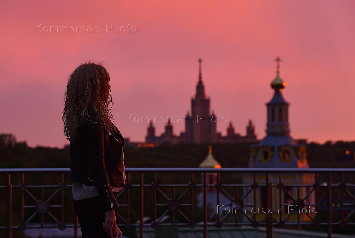 Жанровая фотография. Виды Москвы на фоне закатного неба.