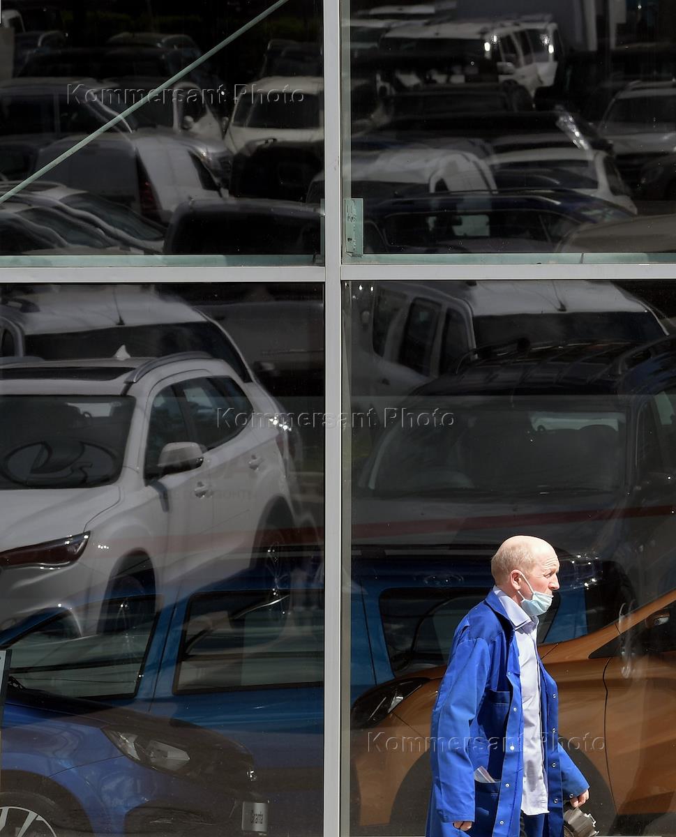 Экономика и бизнес Москва во время режима самоизоляции из-за опасности распространения коронавирусной инфекции COVID-19. Жанровая фотография. Закрытые автосалоны на Ярославском и Дмитровском шоссе.