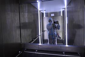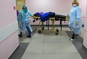 Медицина Московская область во время режима самоизоляции из-за опасности распространения коронавирусной инфекции COVID-19. Больница для приема пациентов с COVID-19 в Домодедове.