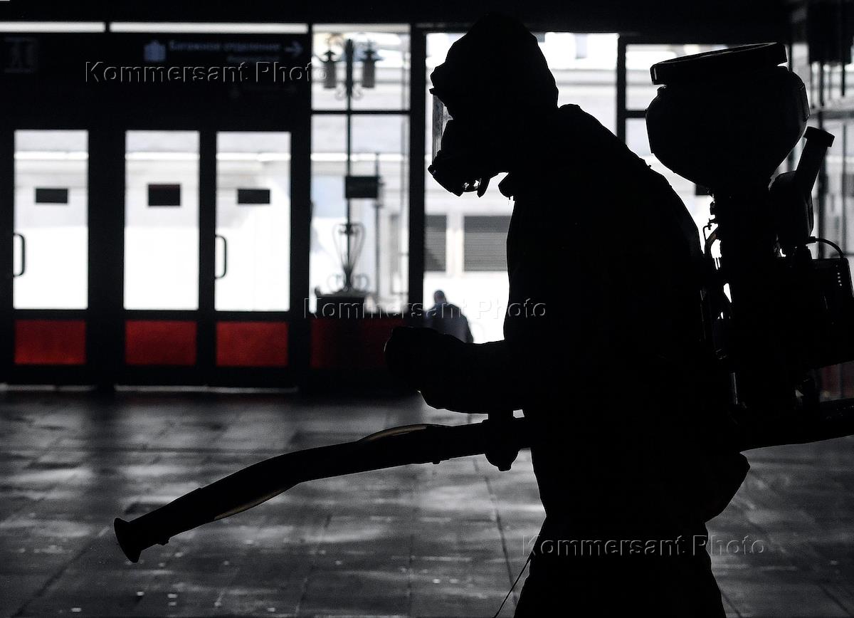 Меры противодействия распространению коронавирусной инфекции COVID-19. Дезинфекция Ленинградского вокзала.