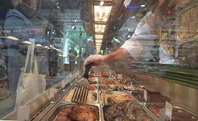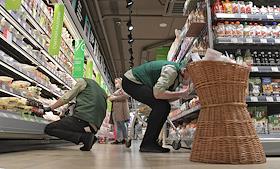Экономика и бизнес Москва во время режима самоизоляции из-за опасности распространения коронавирусной инфекции COVID-19. Жанровая фотография. Работа магазина "Азбука вкуса".