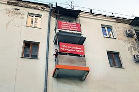 Плакаты на балконах жилого дома по улице Самарской, 192, жители которого выступают против признания…