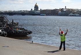 Окружающая среда Санкт-Петербург во время режима самоизоляции из-за опасности распространения коронавирусной инфекции COVID-19. Жанровые фотографии. Набережная Лейтенанта Шмидта. Невский проспект и Казанский собор.