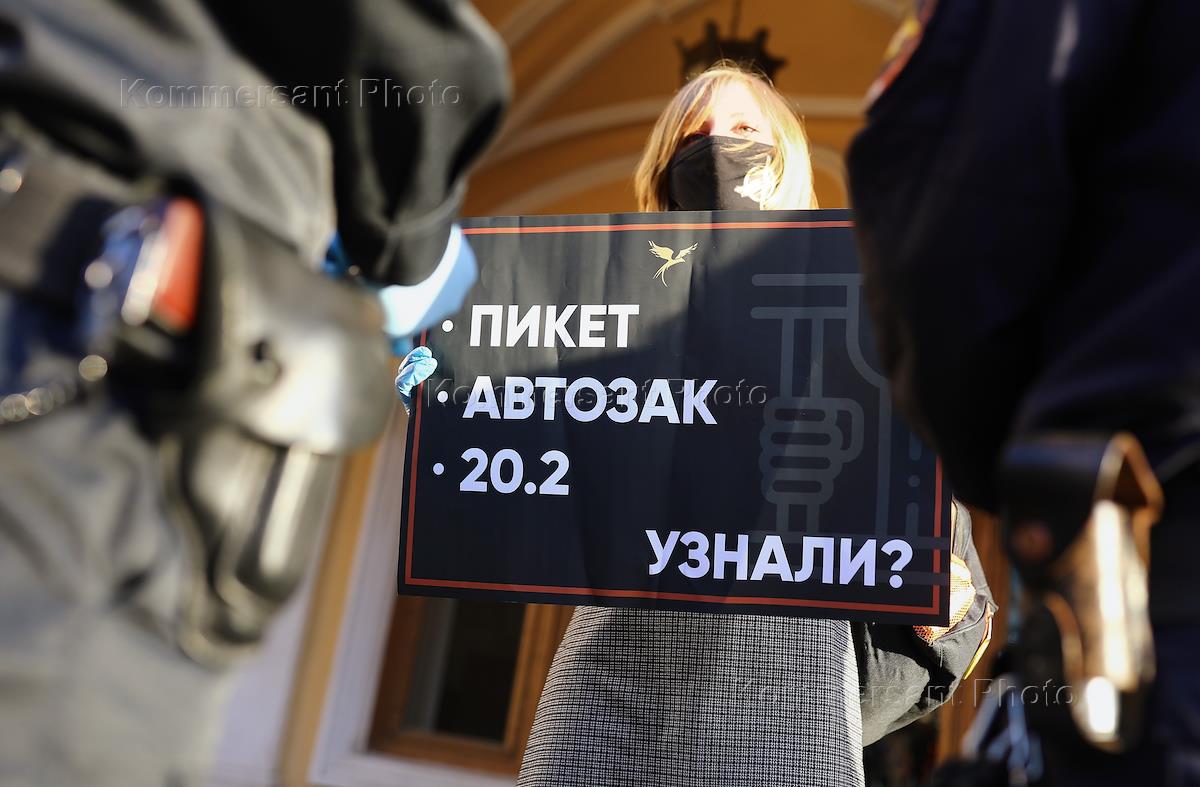 Серия одиночных пикетов у Гостиного двора в поддержку журналистов, задержанных в Москве. Участник…