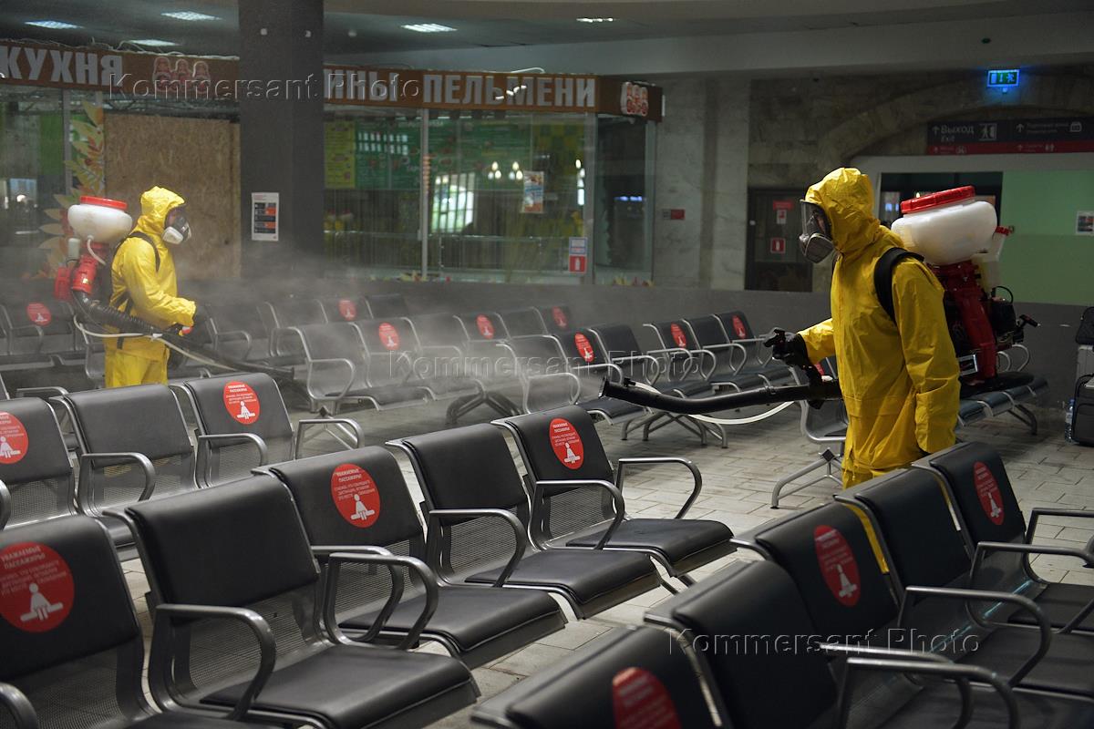 Меры противодействия распространению коронавирусной инфекции COVID-19. Дезинфекция Казанского вокзала.