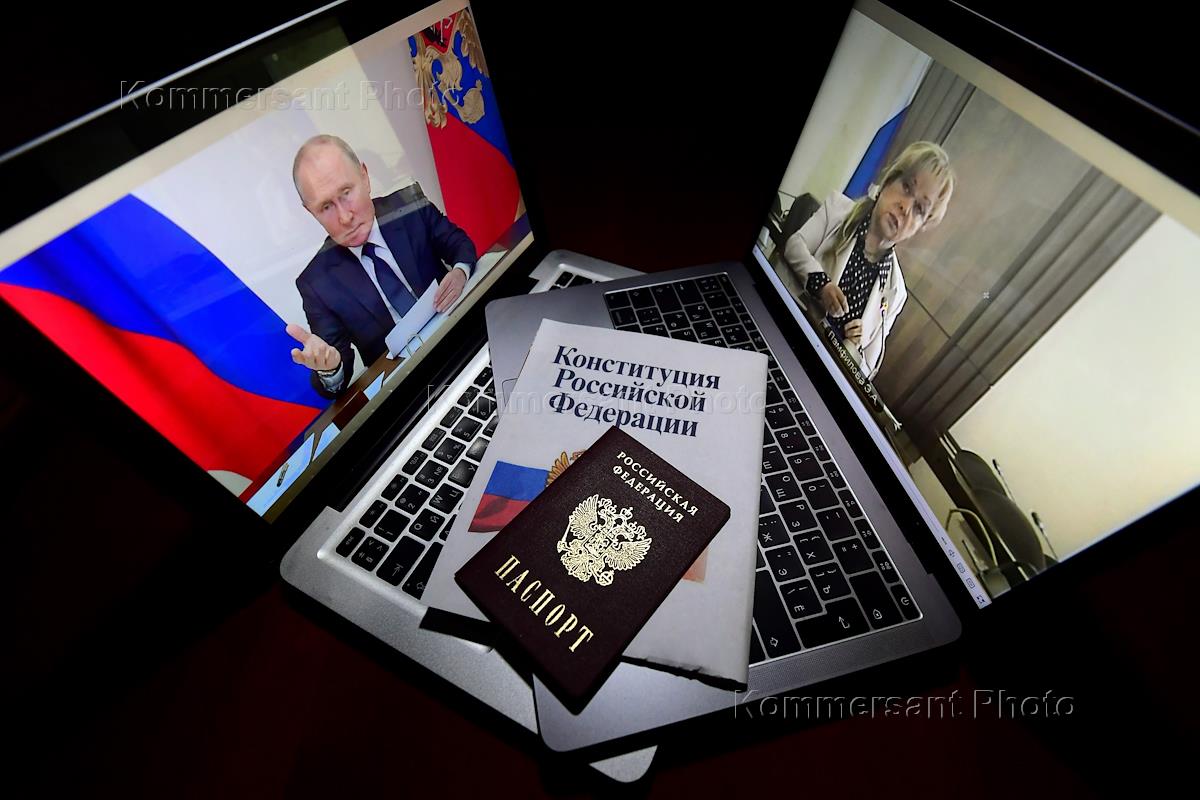 Политика Жанровая фотография. Президент России Владимир Путин проводит совещание с руководством ЦИК и членами рабочей группы по подготовке предложений о внесении поправок в Конституцию.