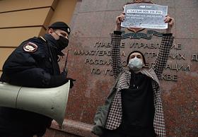 Серия одиночных пикетов против полицейского насилия у здания Главного управления МВД России по…