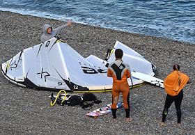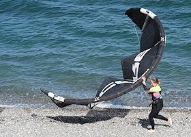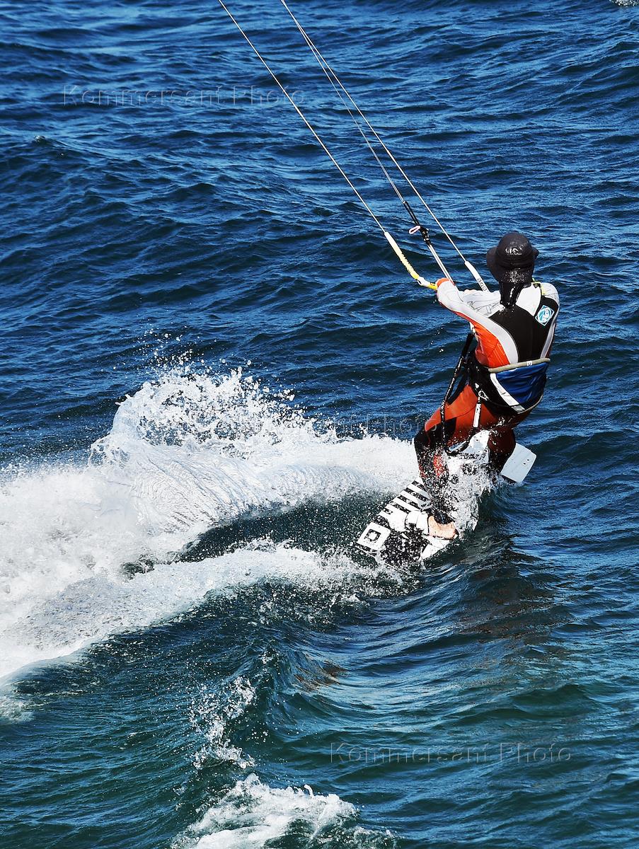Спорт Крым после отмены режима самоизоляции из-за опасности распространения коронавирусной инфекции COVID-19. Жители Крыма занимаются кайтингом на Чёрном море.